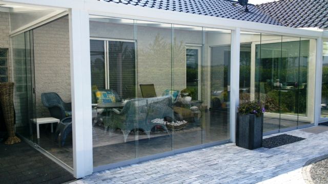 Zijwanden zijn uit te voeren met een kunststof of aluminium kozijn.